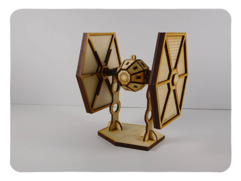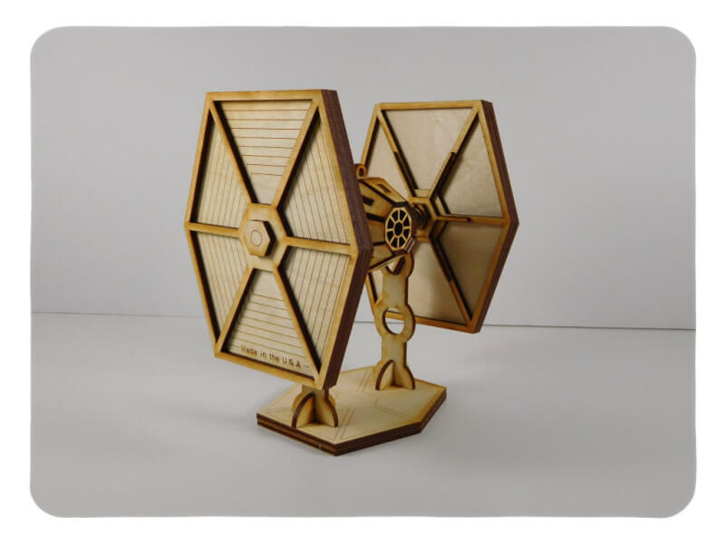 The Fighter-1 is the key weapon in your intergalactic battle needed to protect the commander. When you start building this model you will become part of the intergalactic force, by gluing each piece your galactic force becomes stronger. This model comes with a stand, but if you want you can use the hanger to raise it high to conquer the galaxy.LazerModel are made from 100% Baltic Birch Plywood giving it a great rustic look, but if you want, you can paint it. We suggest using wood glue or regular white craft glue; do not use a glue gun, gorilla glue, epoxies, or instant glues. This model takes about 1-3 hours to build. All our LazerModels are Laser Cut in house and that allows us to proudly say “Made in the United States of America”